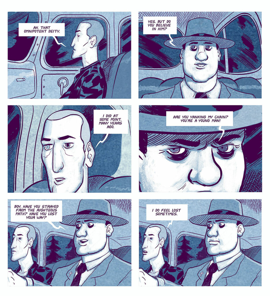 I Highwayman (Top Shelf, 2019) følger vi Lucas, en gåtefull, ensom vandrer som har haiket langs amerikanske motorveier i flere hundre år. Han er på leting etter årsaken til (og en kur for) sin udødelighet, mens verden gradvis faller sammen rundt ham.