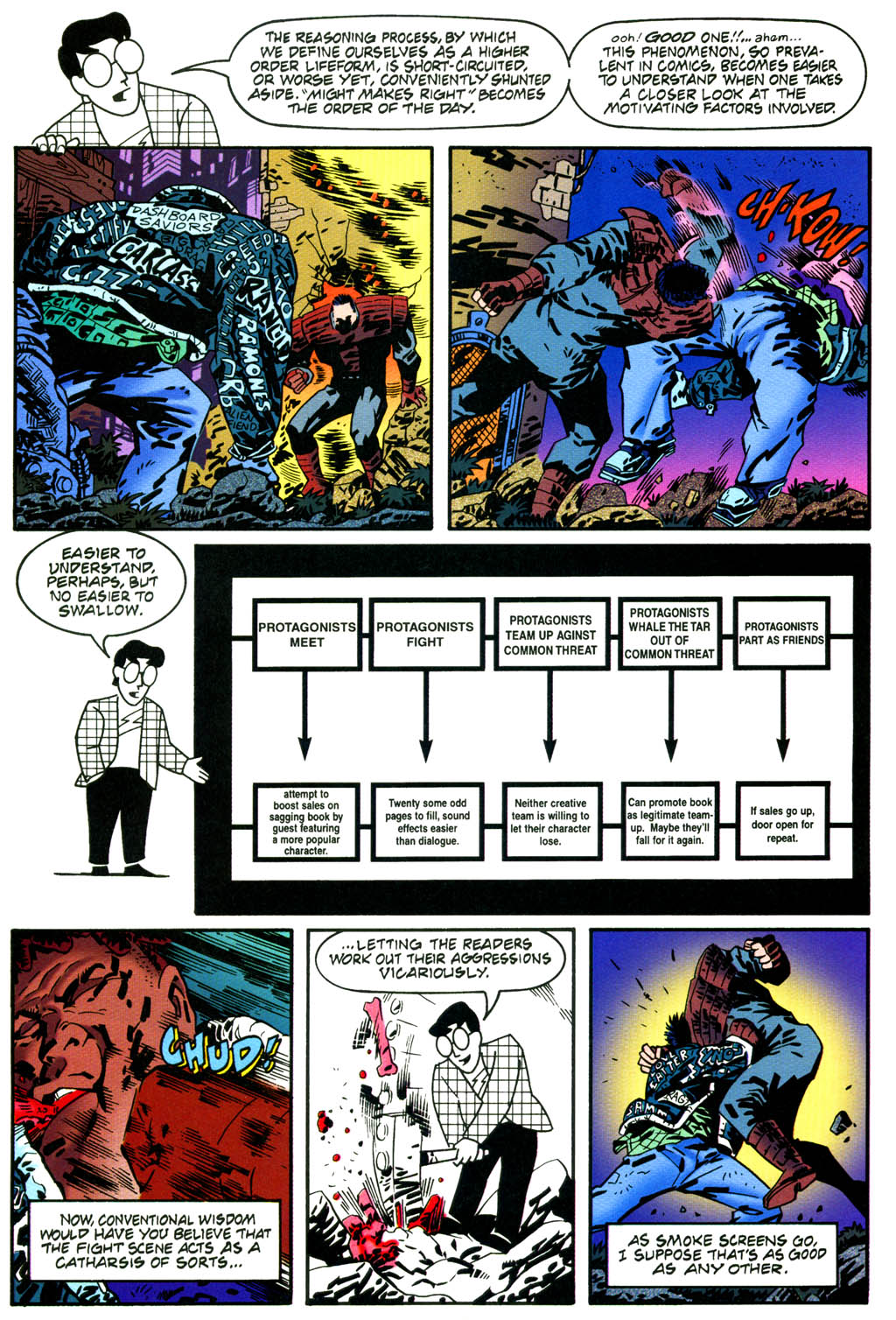 Ett eller annet sted under lagene med ironi, livslede og trass finnes det en ambisjon om å lage et superheltkonsept som kunne stå side om side med de mest populære Valiant-tegneseriene fra perioden da de var eid av tv-spill-selskapet Acclaim (som Turok, Dinosaur Hunter og Bloodshot). Men Giffen er ute av stand til å ta sin egen serie på alvor, og begynner umiddelbart å motvirke leserinnlevelsen med selvbevisst dialog, falske annonser for andre Valiant-serier og et gjestespill av Scott McCloud, som dekonstruerer og analyserer actionsekvensene mens de pågår, i kjent Understanding Comics-stil.